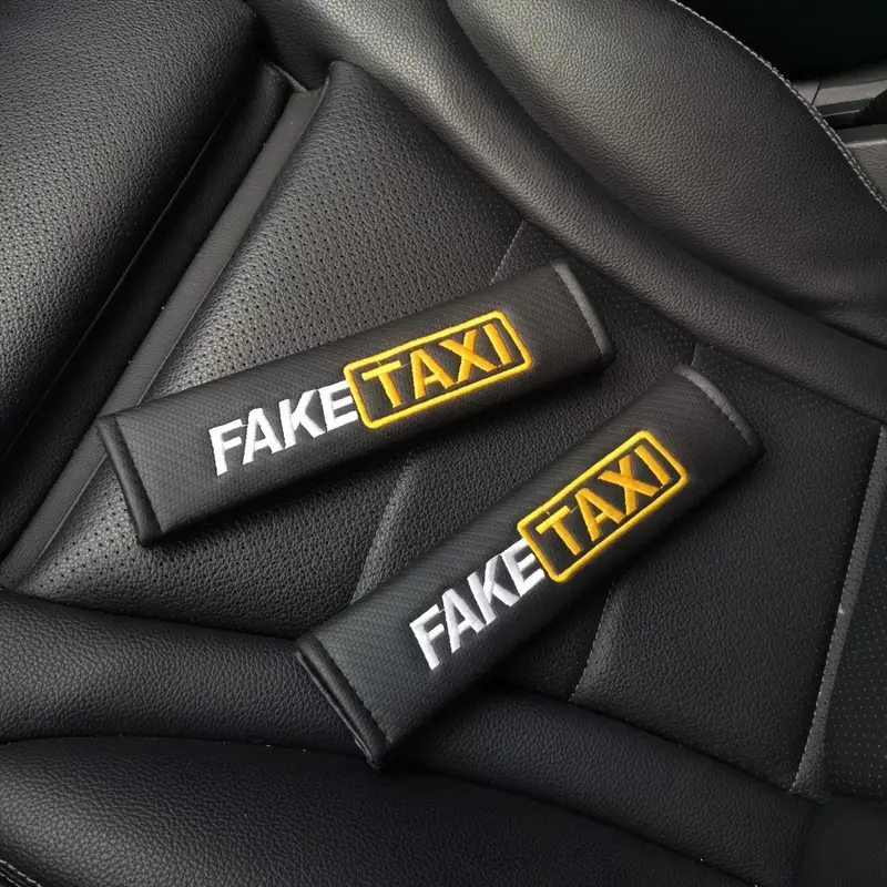 Auffälliges Design: Mit gesticktem „FAKE TAXI“-Logo – für ein humorvolles und sportliches Statement im Fahrzeug.