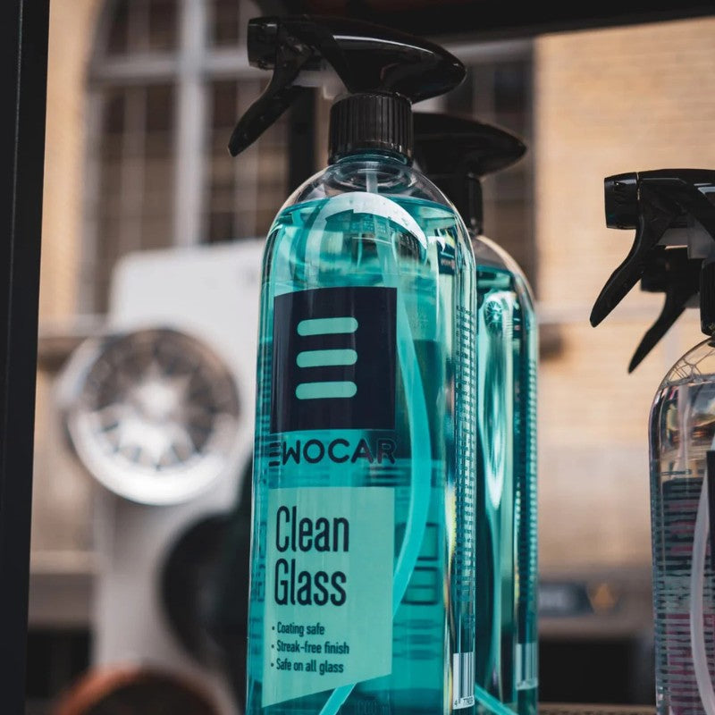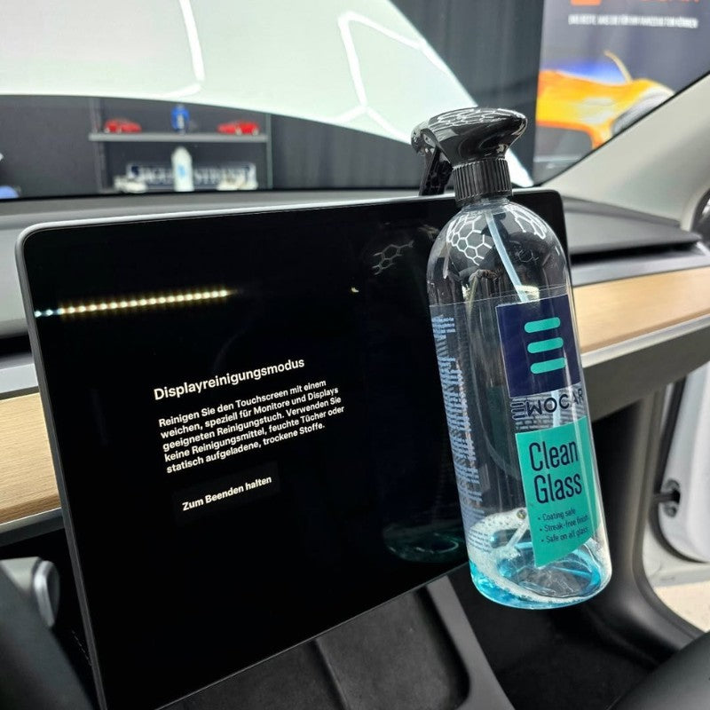 Der Ewocar CleanGlass Glasreiniger sorgt für eine streifenfreie und kristallklare Reinigung von Glasflächen im Innen- und Aussenbereich des Fahrzeugs. Die pH-neutrale Formel entfernt zuverlässig Fett, Schmutz und Rückstände von Glasbeschichtungen, ohne Ammoniak zu enthalten. Dadurch ist der Reiniger besonders materialschonend und auch für empfindliche Innenraummaterialien wie Kunststoff, Vinyl, Alcantara sowie Displays und Touchscreens geeignet.